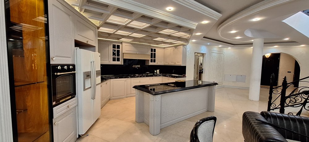 آشپزخانه مدرن مجهز با نورپردازی حرفه ای و لمسی