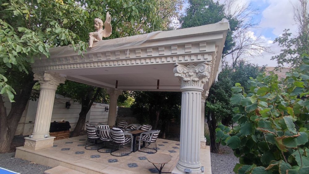 آلاچیق ،آتشکده و آبنما در حیاط